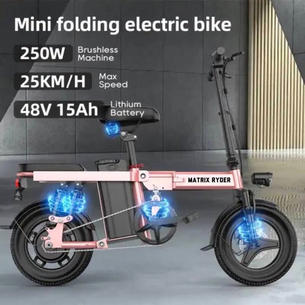 De Matrix Ryder T14 heeft een long range accu met maar liefst 15Ah. Met gemak kan dez compact vouwfiets tot wel 100km afleggen zonder tussentijd te opladen.'ook wel handig voor een dag lang cruisen! Deze super long range batterij van 15 Ah premium lithium cellen is beste in zijn klasse voor zowel afstand bereik en kwaliteit. Het is een klein compact fiets met een super groot batterij!