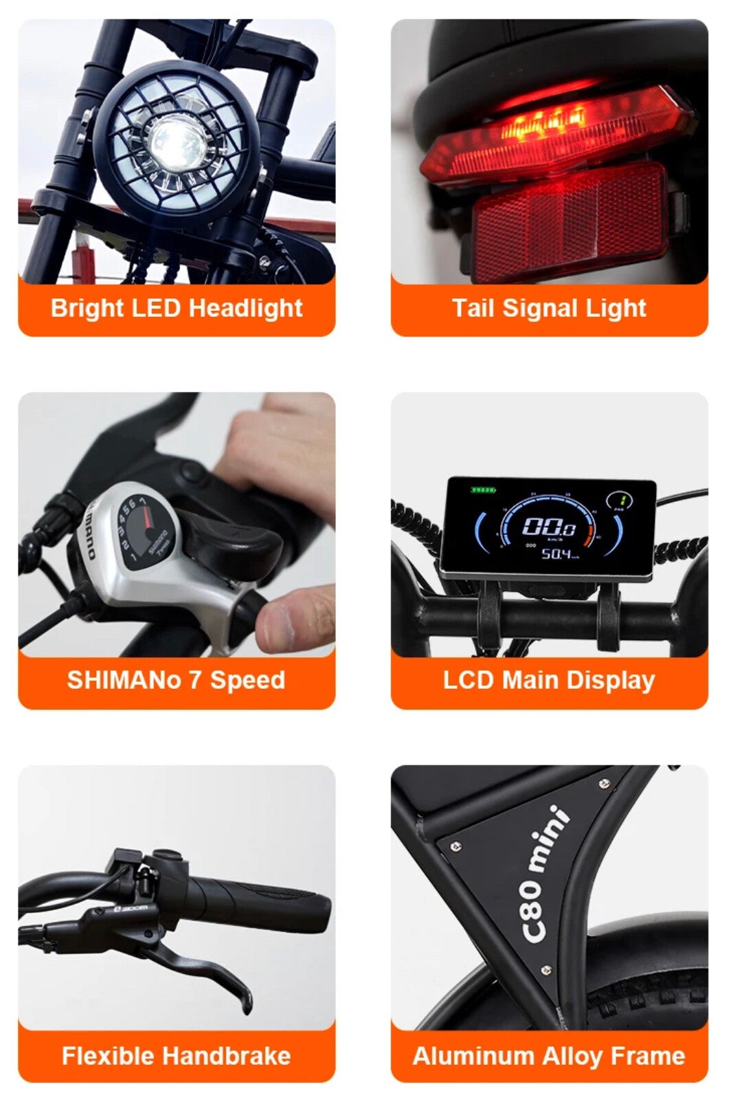 Maak kennis met nieuw generatie mini fatbike C80. Gecertificeerd 250W motor vermogen en 10Ah accu. Voorzien met kettingkast, voetsteuntjes achter, 5 inch kleur LCD display en diefstal alarm. Kortom een volwassen fatbike in compact vorm. Geschikt voor personen vanaf 1.45 meter.