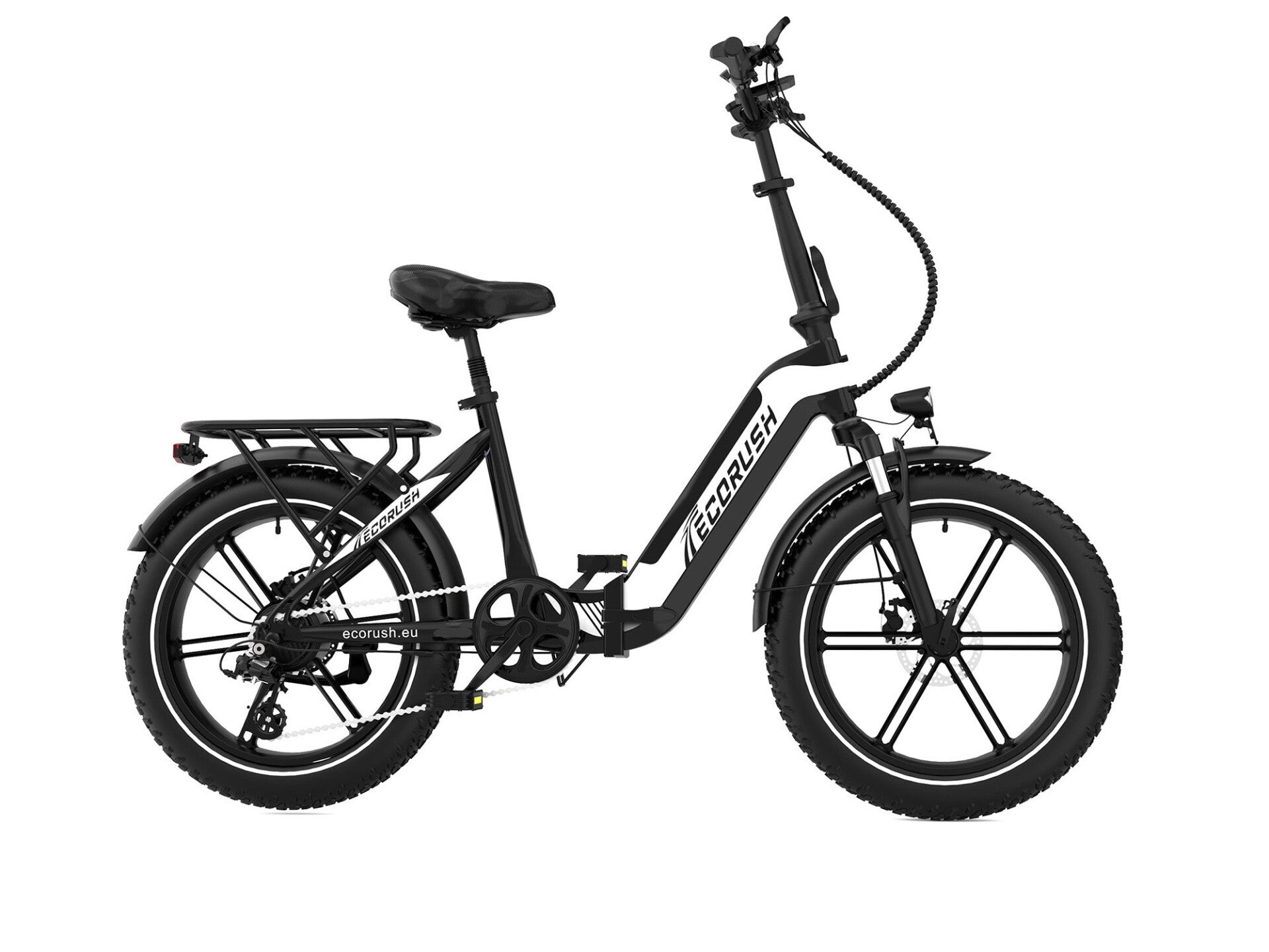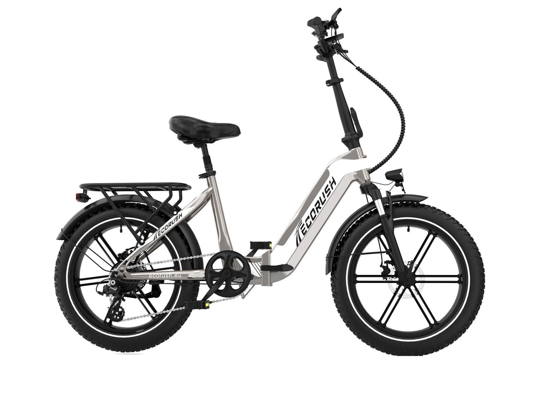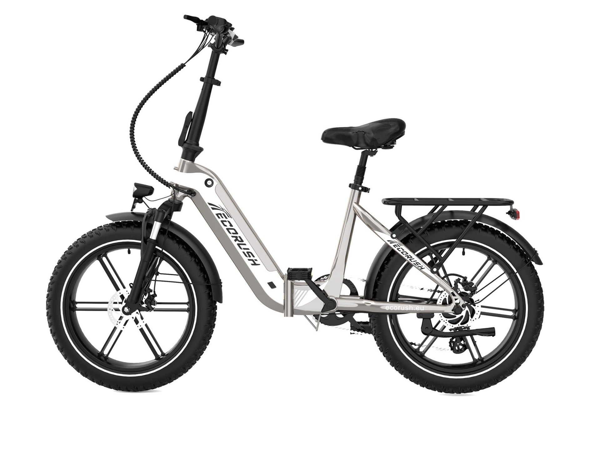 De opvouwbare e-bike ECO R2 is ontworpen voor moderne fietsers en combineert compact gemak met terreincapaciteiten. Uitgerust met een responsieve voorvering, Shimano 7-speed versnellingssysteem, duurzame 20×4,0" lekbestendige banden en een schokabsorberend zadel met zadelpen, garandeert hij een soepele en stabiele rit. Een stevige bagagedrager zorgt voor extra gebruiksgemak, terwijl het opvouwbare aluminium frame opbergen en vervoeren moeiteloos maakt – perfect voor zowel stadsverkeer als weekendtrips.