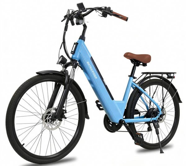De Matrix Ryder ERA28 elektrische fiets is gebouwd voor wie waarde hecht aan comfort, betrouwbaarheid en actieradius. De borstelloze 250W-motor met achternaaf, die een koppel van 55 Nm produceert, biedt een constante boost voor woon-werkverkeer in de stad en ontspannen ritten op het platteland, en is bovendien EU-goedgekeurd bij snelheden van 25 km/u en met gashendel voor optrekken tot 6km/u. De 36V 23A-uitgang van de motor is gecombineerd met ingebouwde temperatuurbeveiliging voor een lange levensduur.